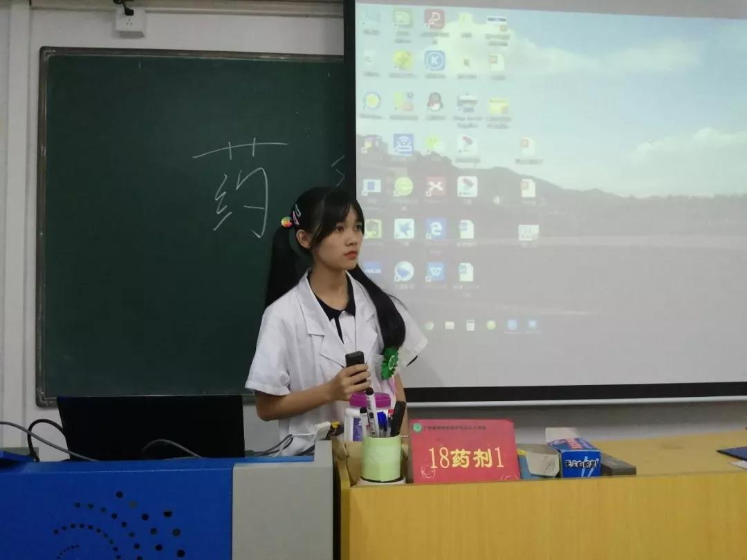 来自药剂专业,各个班级的参赛小队展示属于他们的团队风采!向评委老师介绍这个团队的名字,为什么取这个名字,他们的团队精神,怎么去经营这个药店,哪位是他们店内的执业药师、营业员、收银员等,还有运用销售技巧销售药品。