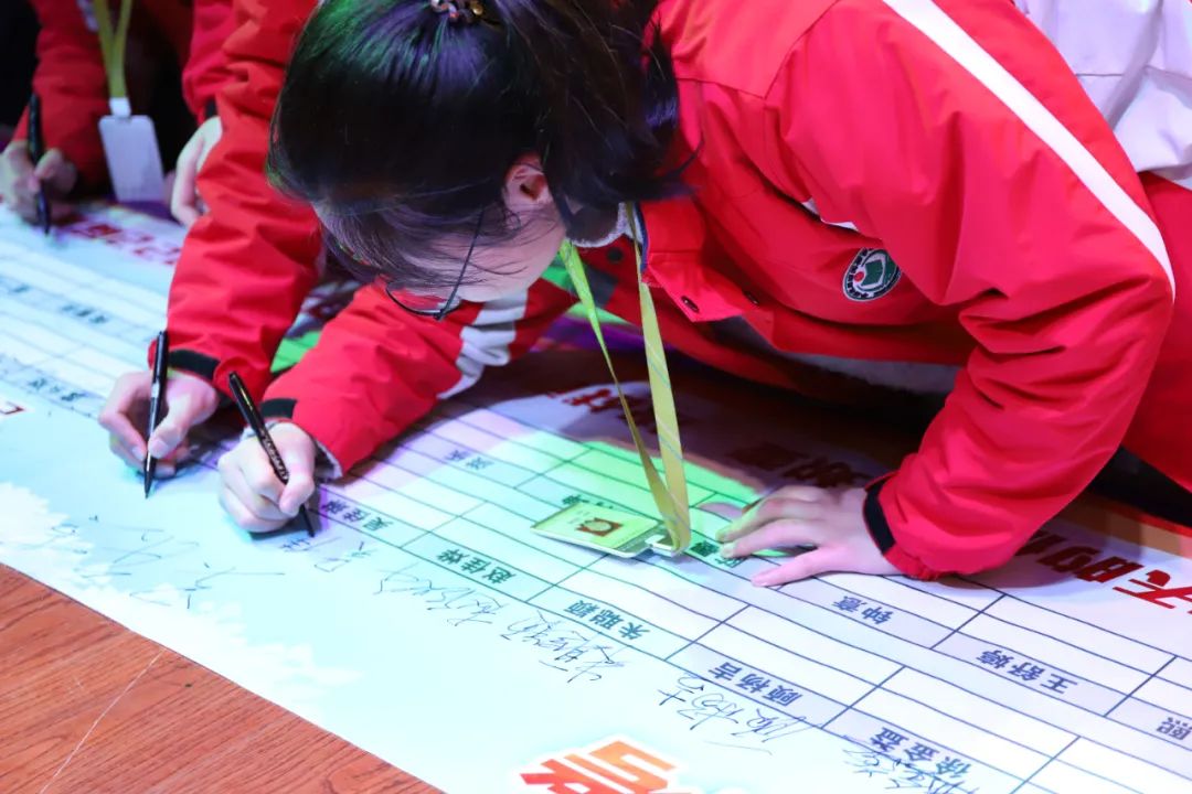 最后,在高三(1)班韩正扬同学的带领下,全体同学庄严宣誓并签名。千百个激昂高亢的喉咙发出同一个呐喊,铿锵有力,掷地有声,这是勇士冲锋陷阵前的铮铮誓言,这是莘莘学子奋战高考的坚定决心。拼搏一百天,理想扬帆起航!奋斗一百天,未来绚丽辉煌!冲刺一百天,绘出人生华丽篇章!